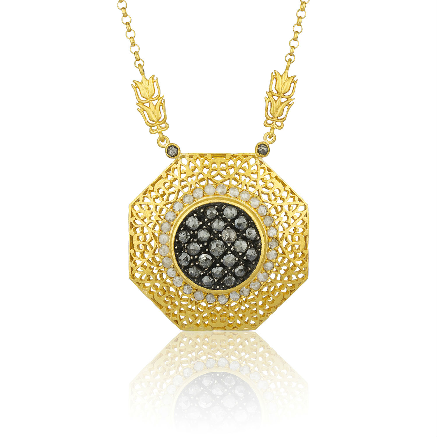 • 24K gold, handmade necklace adorned with antique diamonds.