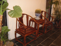 This graceful wooden armchair flaunts a traditional Chinese style with delicately crafted details on the back of the armchair. It goes with many kinds of oriental home decorations.