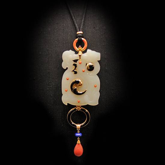 This is an antique gold mounted jade pendant. The pendant is thought to be made in the Qing Dynasty. The antique jade pieces has a historical special value for wearing and collecting.