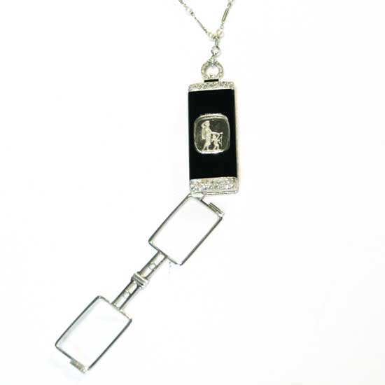 This featured necklace carries the history and beauty from as old as 1920. The necklace is built with an art-deco style with fine pearls, onyx platinum and diamonds. Accentuate your look with a vintage touch with this necklace on your neckline.