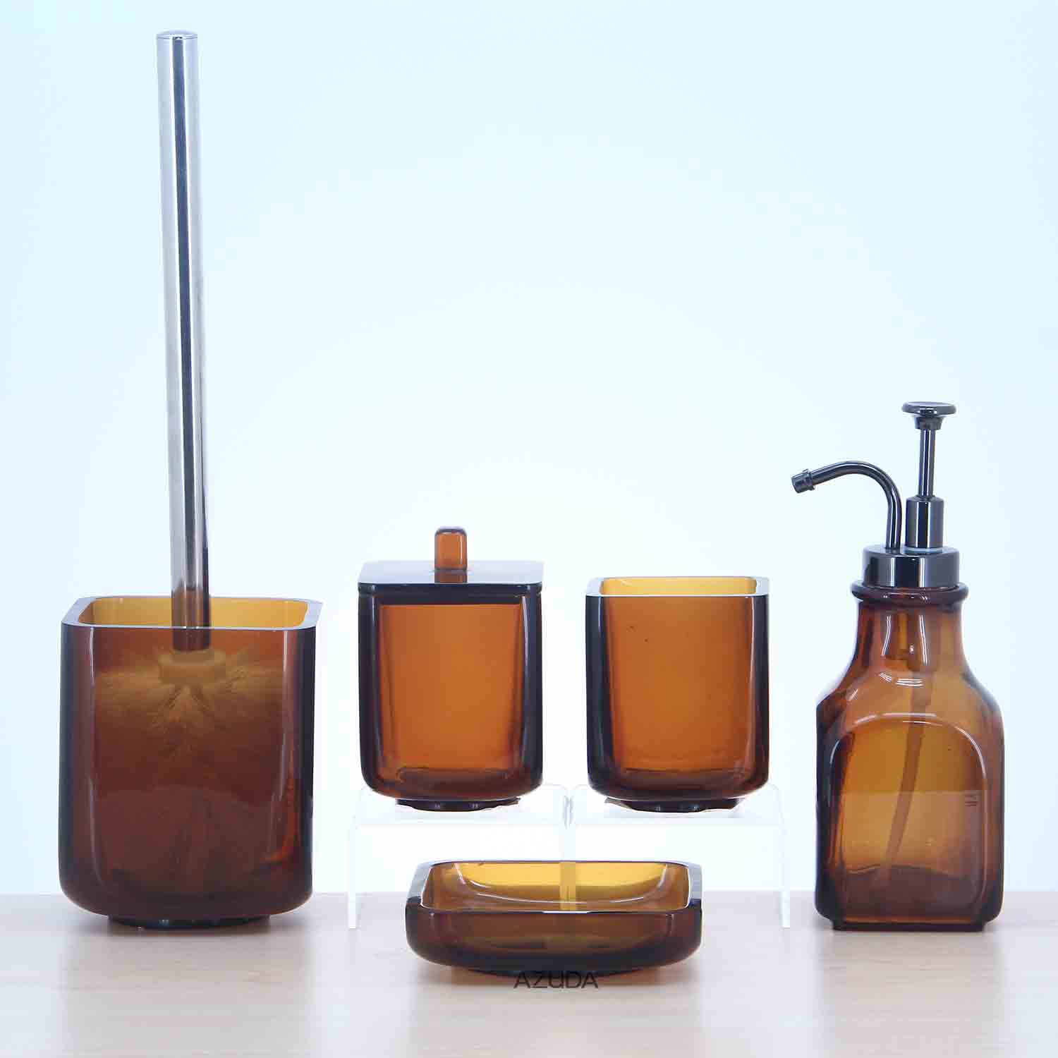 Poly bathroom accessories including lotion dispenser, toothbrush holder, tumbler and soap dish. Antique water sprayer design. Granny Chic Trend bathroom accessories, CAN show your delicate taste of indoor decoration.