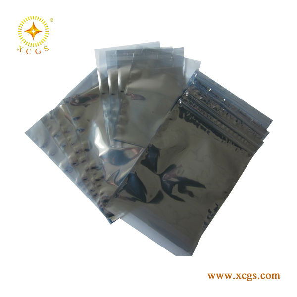 Function: excellent anti-static function, being capable of effectively preventing generation of static iside of it and insulating external static; it can also resist electromagnetic interference; surface resistance can be up to 10(8-11)Ω; silver grey and semi-transparent appearance makes objects inside the bag visible, providing convenience in identifying with a barcode reader