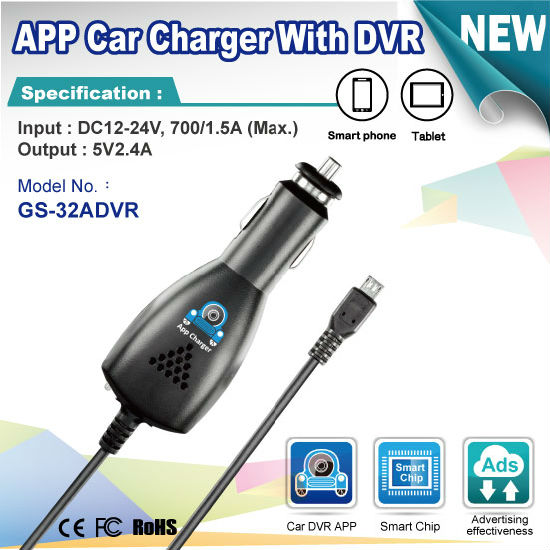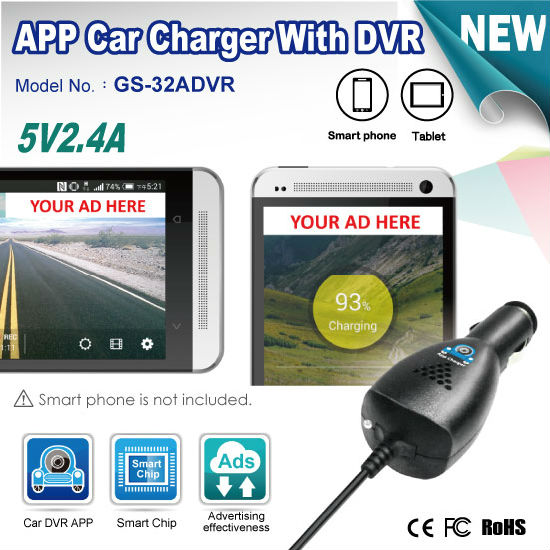 - 3 in 1 Function , Fast Charger + Car DVR + App Dropbox Advertsing.