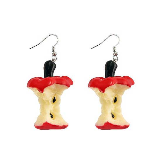 These eye-catching dangling earrings feature a vivid 3D apple core design. They will add interest and flair to your casual look. The earrings are secured with shepherd clasps.