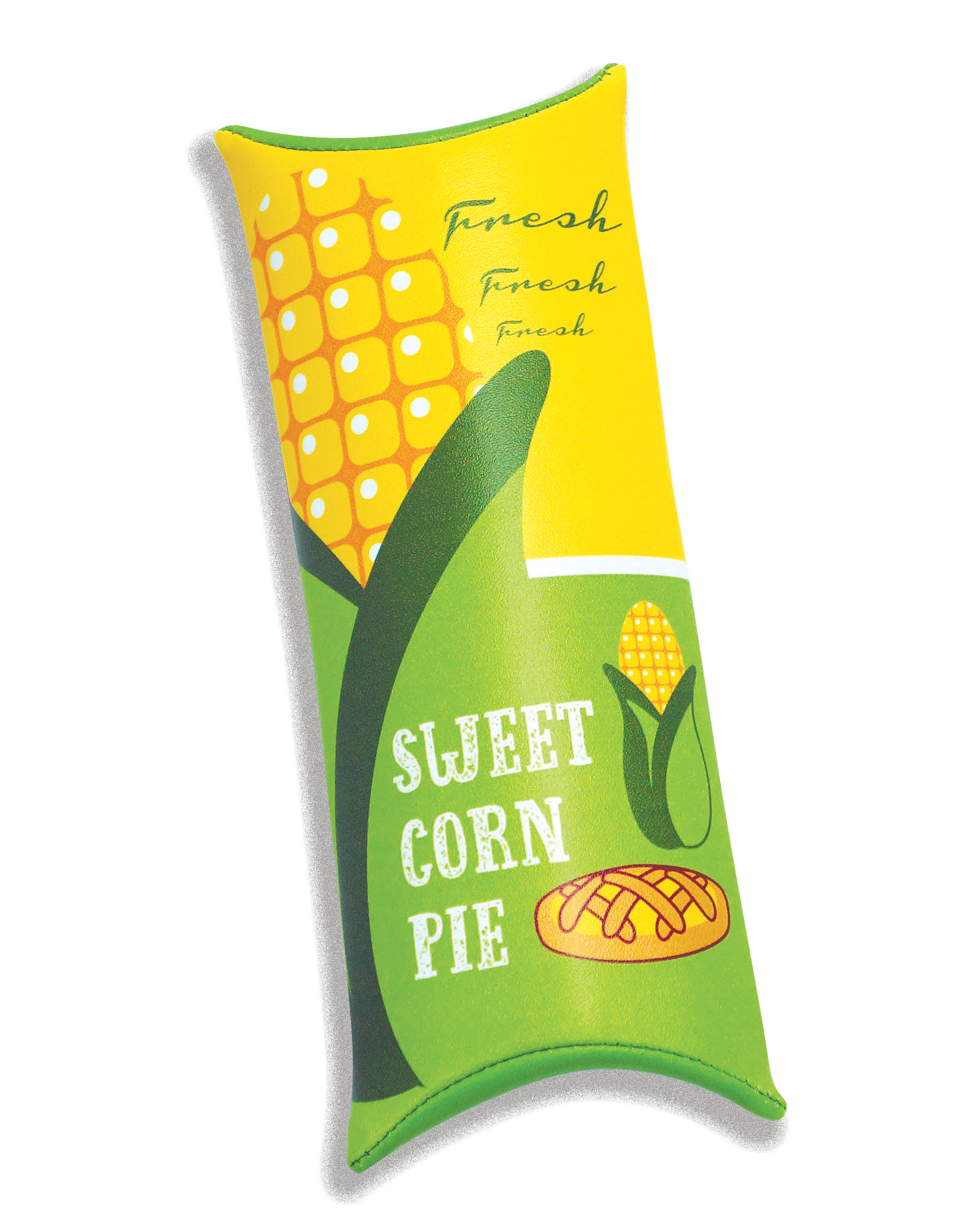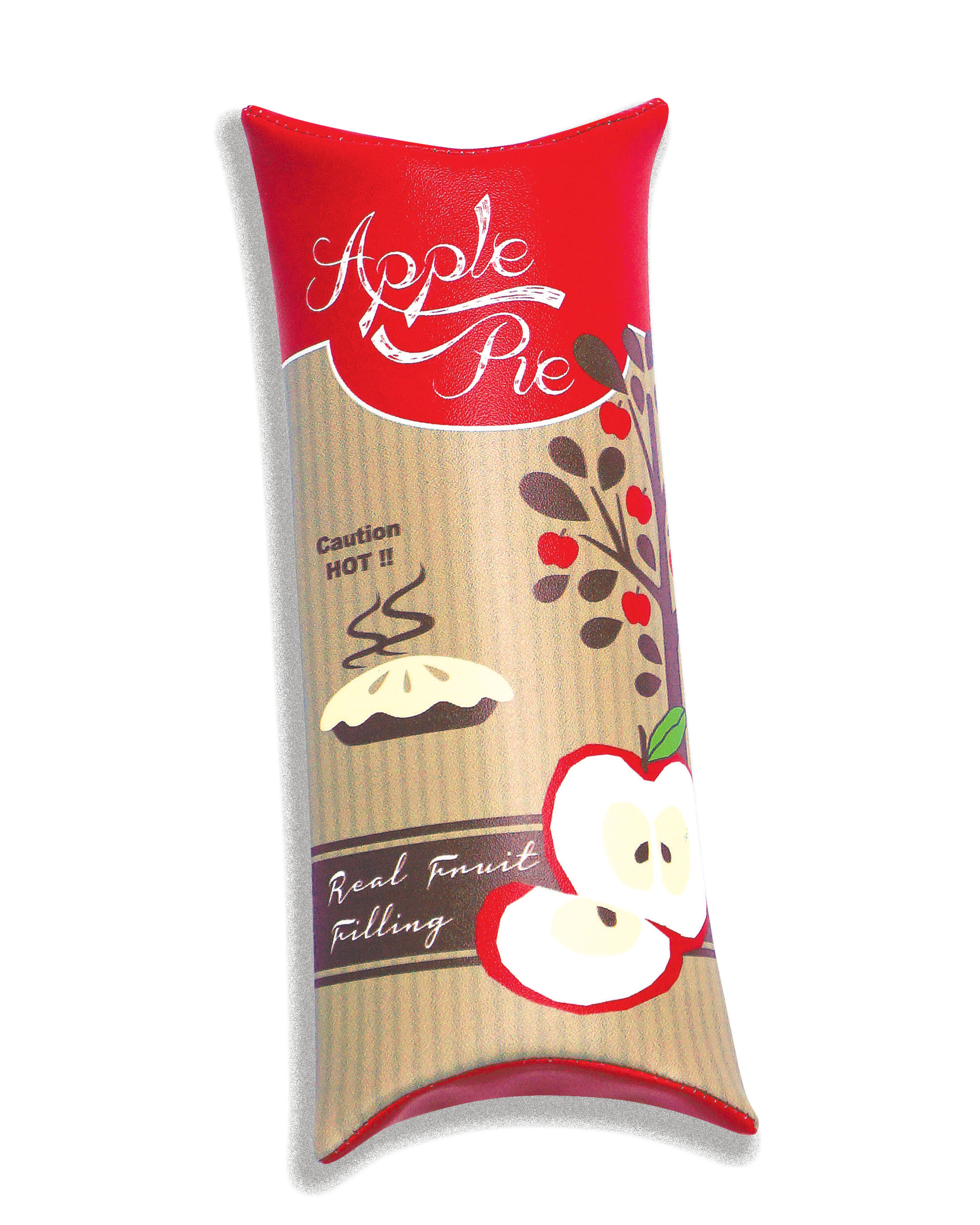 The shape of the pencil pouch is apple pie and corn pie packaging box like. The zipper is at the back of the pouch.