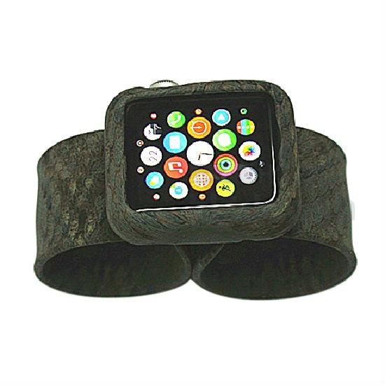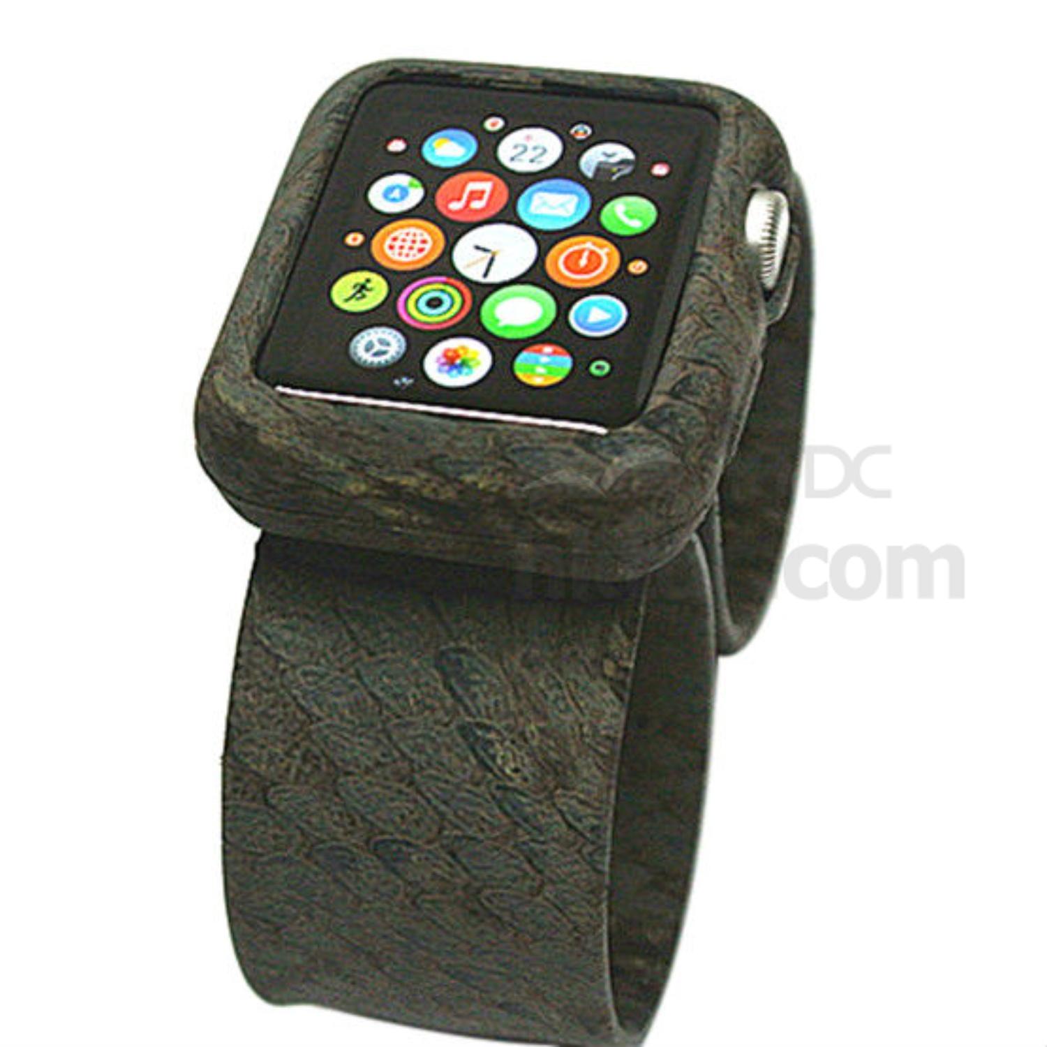 Coming with a bendable strap, this silicone rubber case provides not only protection to your Apple watch but also a personalized fit for all hands. Its smart design allows quick wearing with just a slap. Boasting a cool look in gray snakeskin printing, this case is sure to make your Apple watch a unique one.