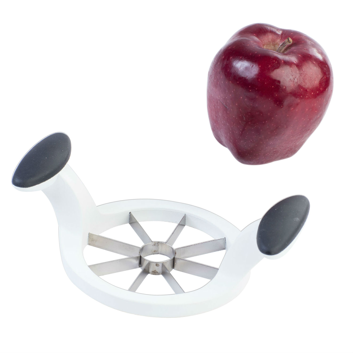 Now you can slice your apple with just one press with this time-saving apple wedger. This functional gadget cores and cuts an apple into eight equal segments. Making use of the elevated plastic handles on both sides, you can keep your knuckles from hitting the table surface. This item is made with high quality material for a sturdy and durable construction. Place this apple corer directly over your apple and push it downwards, you can then enjoy a crisp one in no time!