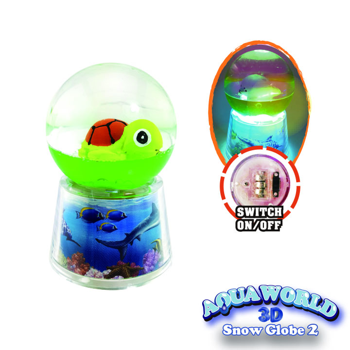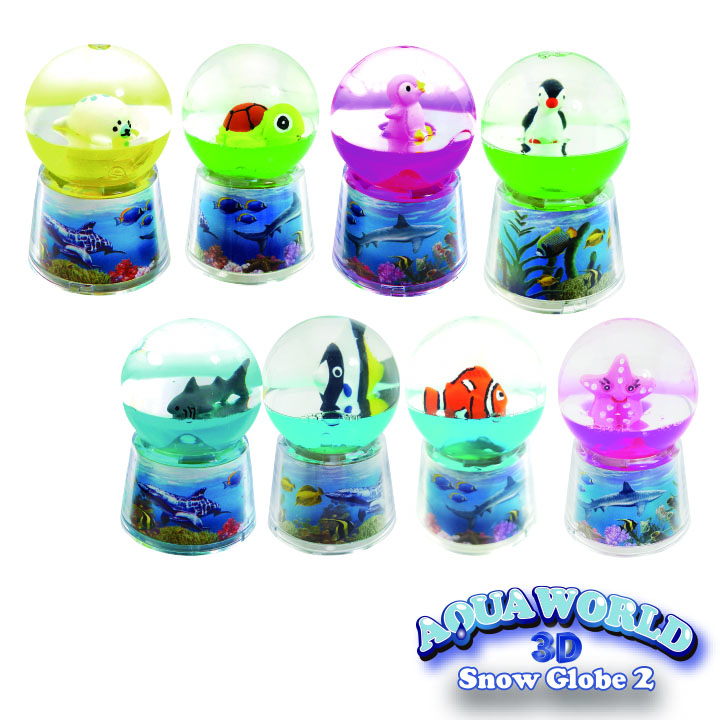 Mini snow globe with ocean scene. PVC film inserted around the base.