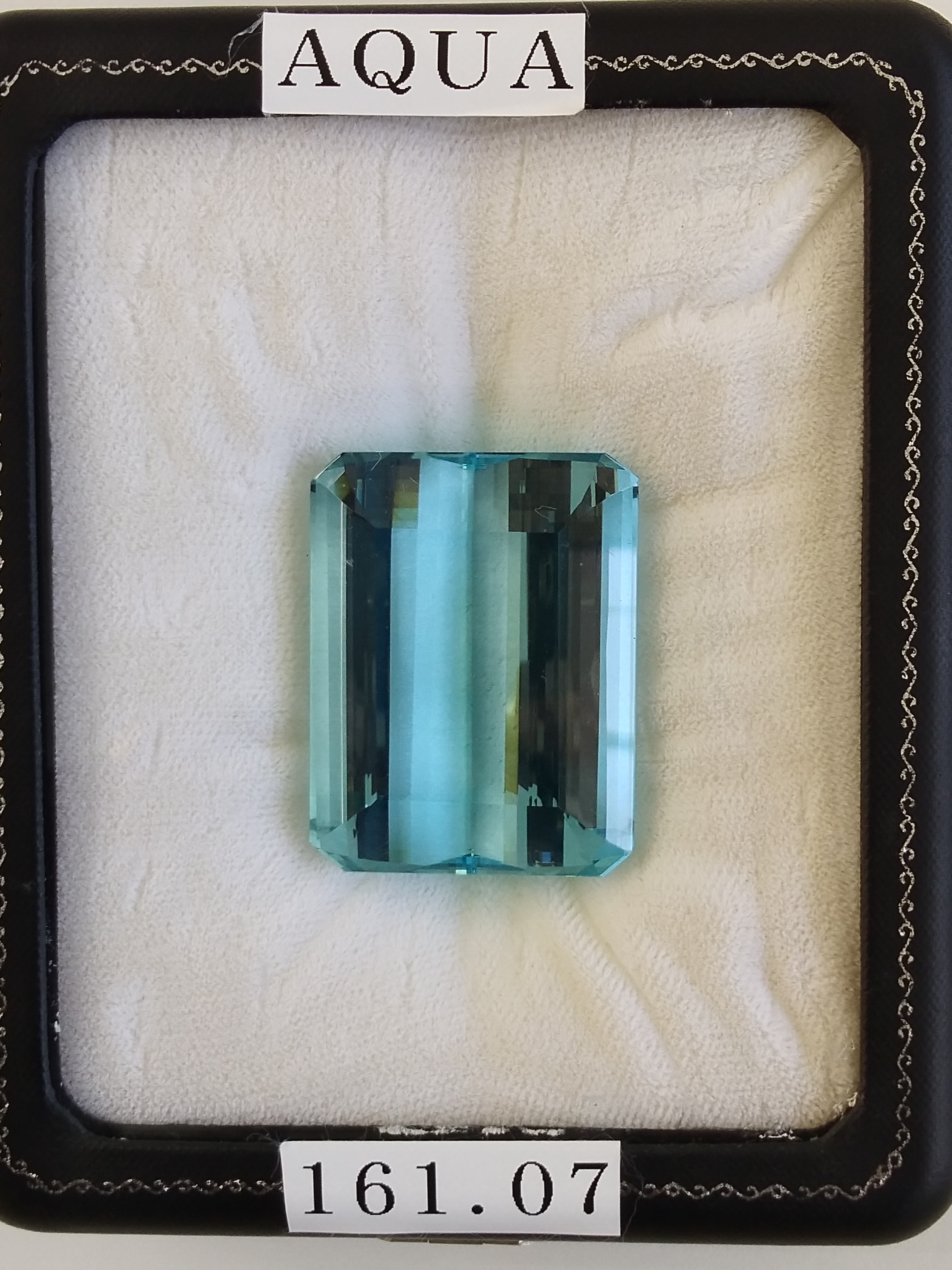 It is Aquamarine Gemstone of 161.07 carats. Shape of the stone is Octagon.
