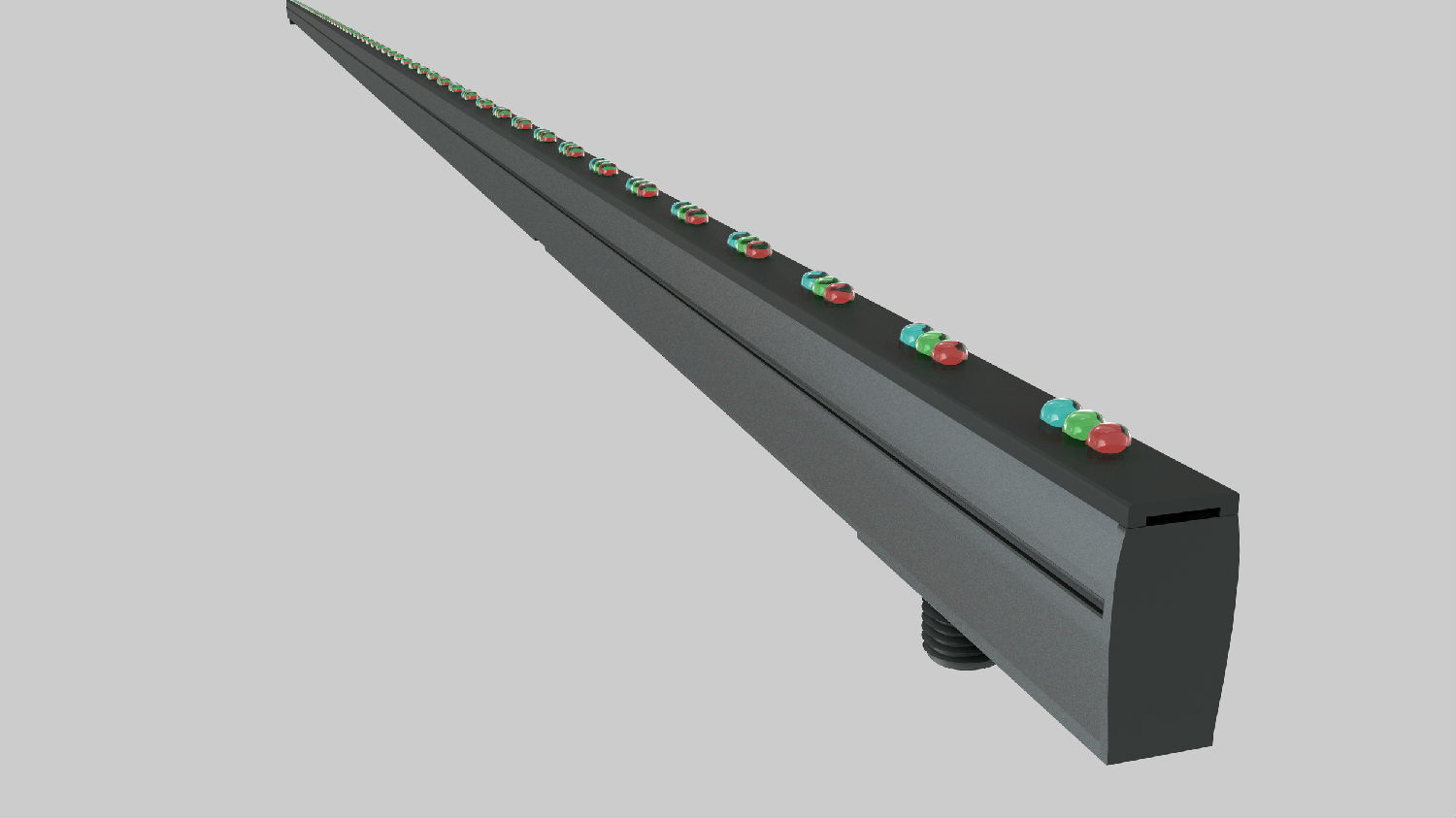 • Aluminum Body & PC Mask(can customize the color) Refresh rate: 2000Hz Frame rate: 60Hz Gray scale: RGB 65536 (3×16bit) Input data: SDI Data/DMX Data Material: Aluminum Body & PC Mask Pixel pitch:Internal of strip: 25mm Drive mode:Constant Current, PWM