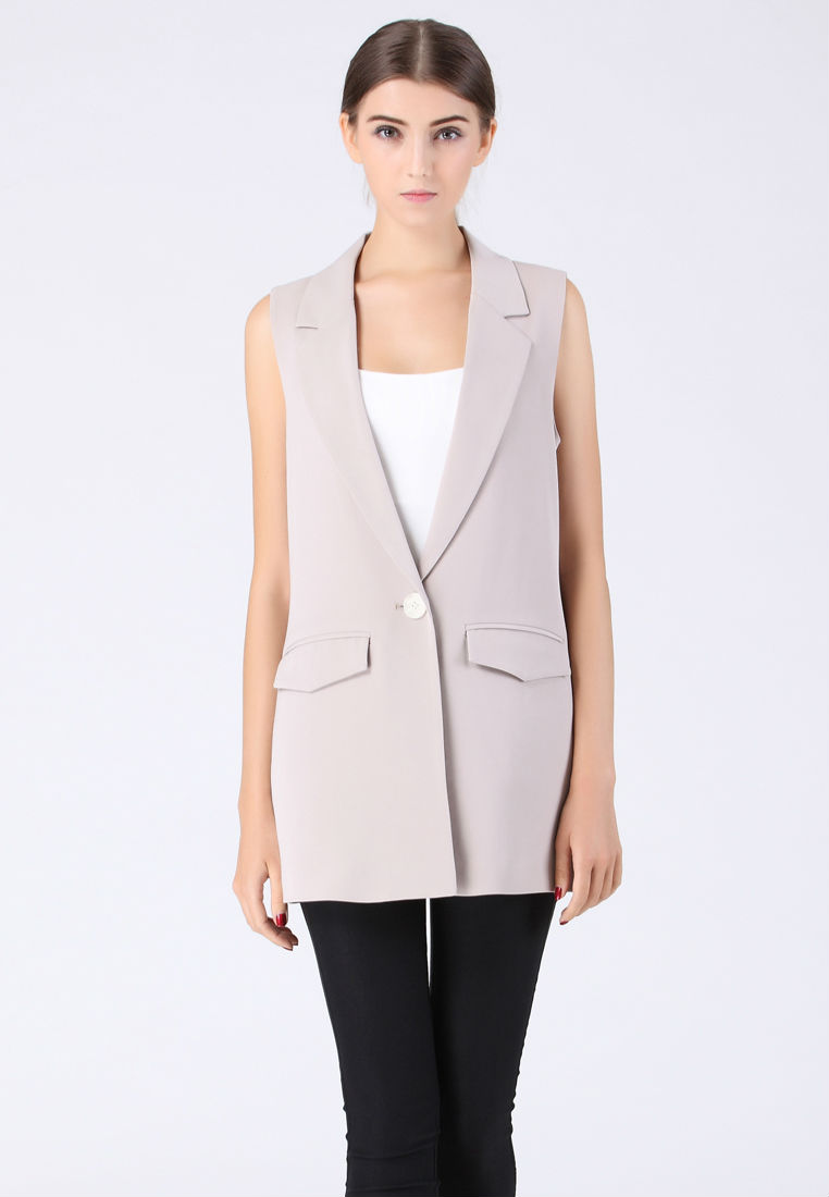Aria Longline Gillet offers a sleek, elegant, and professional look. It features a notch collar, one button fastening, and two front flap pockets. The sleeveless gilet is made with soft and sophisticated fabric which is beautifully tailored.