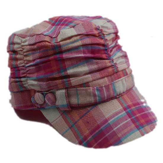 This army-styled cap is designed to fit ladies’ common head sizes. The cap comes with red-and-white checked pattern for an added touch of style. The ruffled details convey a charming look with your well combed hair.