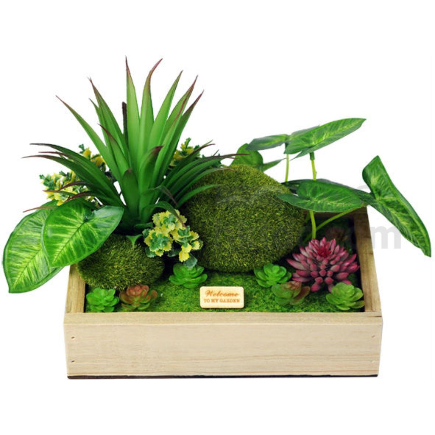 Featured here is an aroma diffuser in a little garden design. It has a wooden toned base with colorful artificial plants on top. This aroma diffuser perfectly combines green design and aromatic technology to scent and decorate your life.