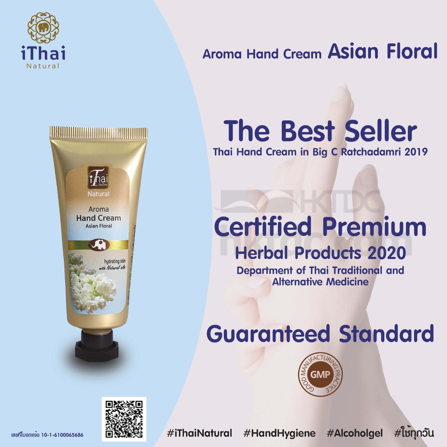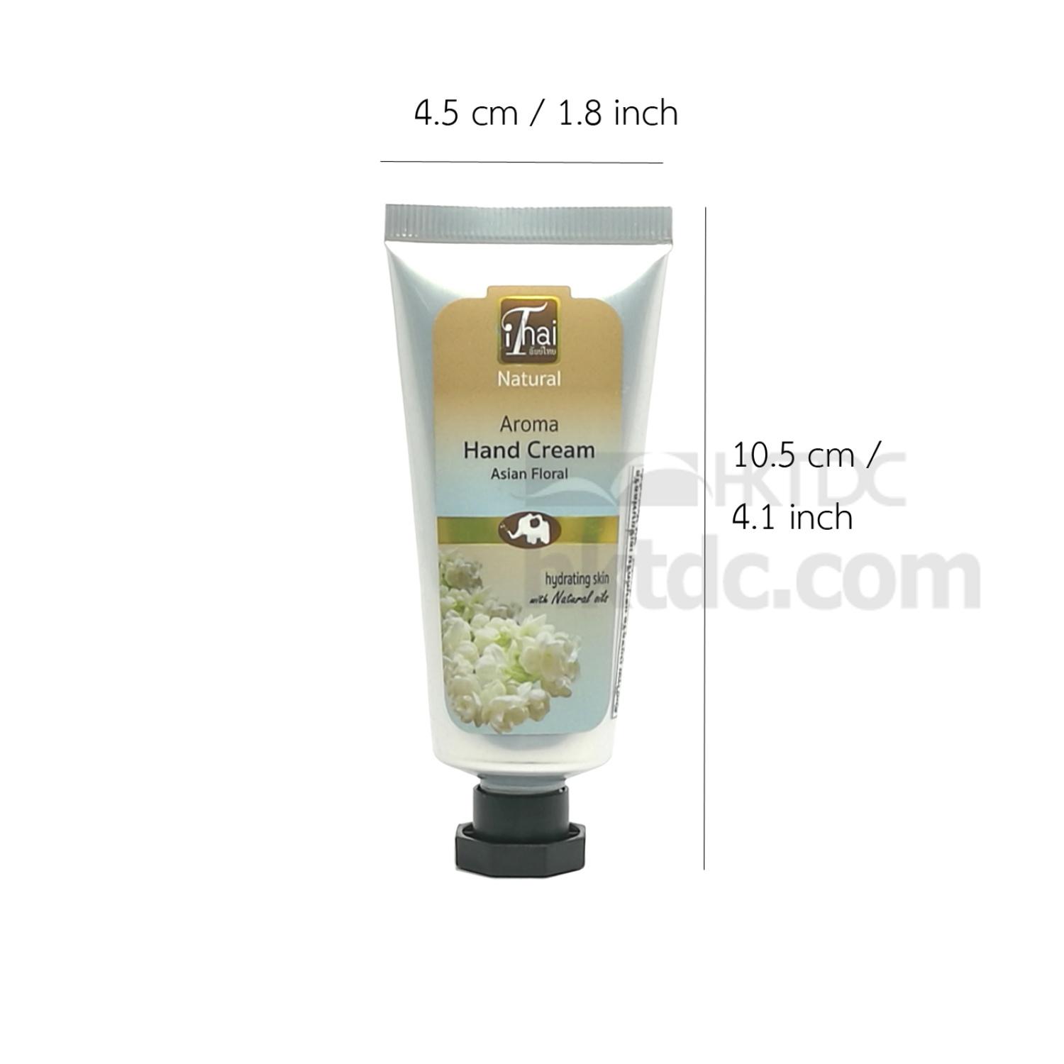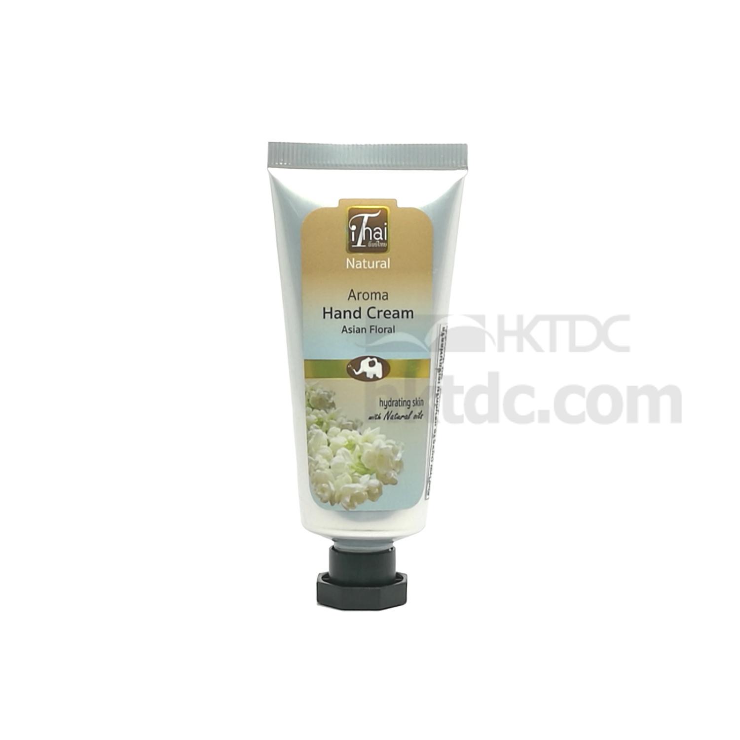 The iThai Natural Aroma Hand Cream - Asian Floral is moisturizing lotion with 5 natural oils, shea butter and effect of centella extract to help reduce free radicles and promote antiaging for both hands.