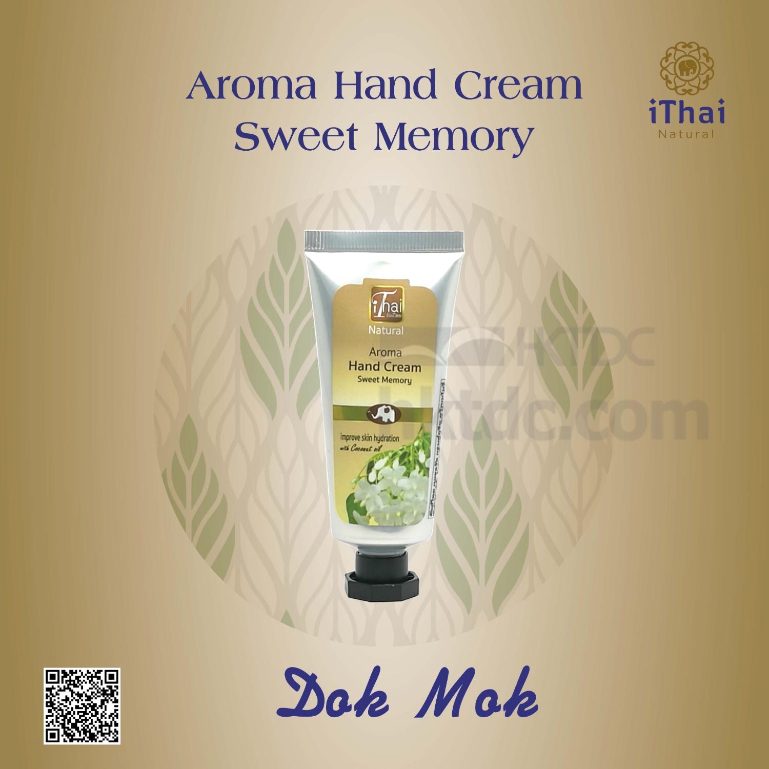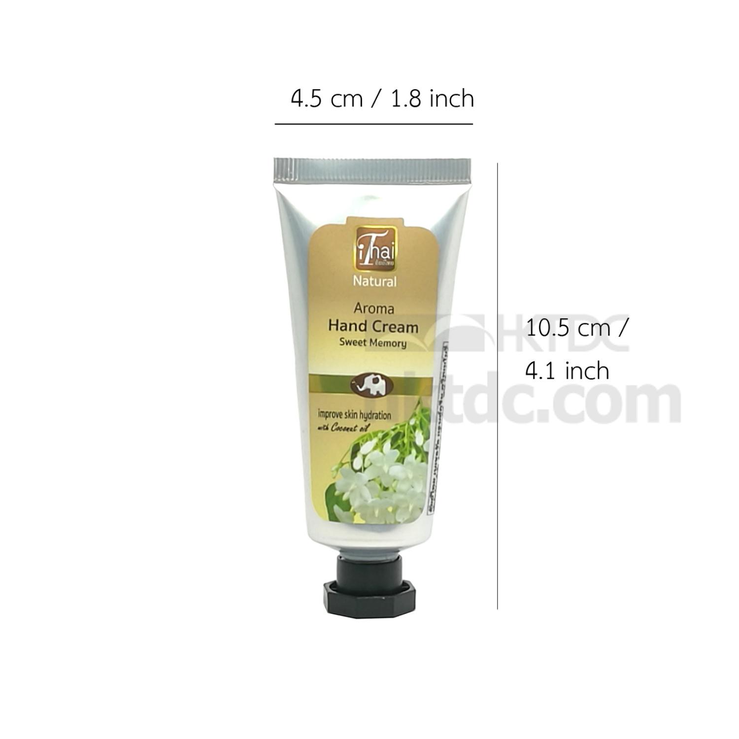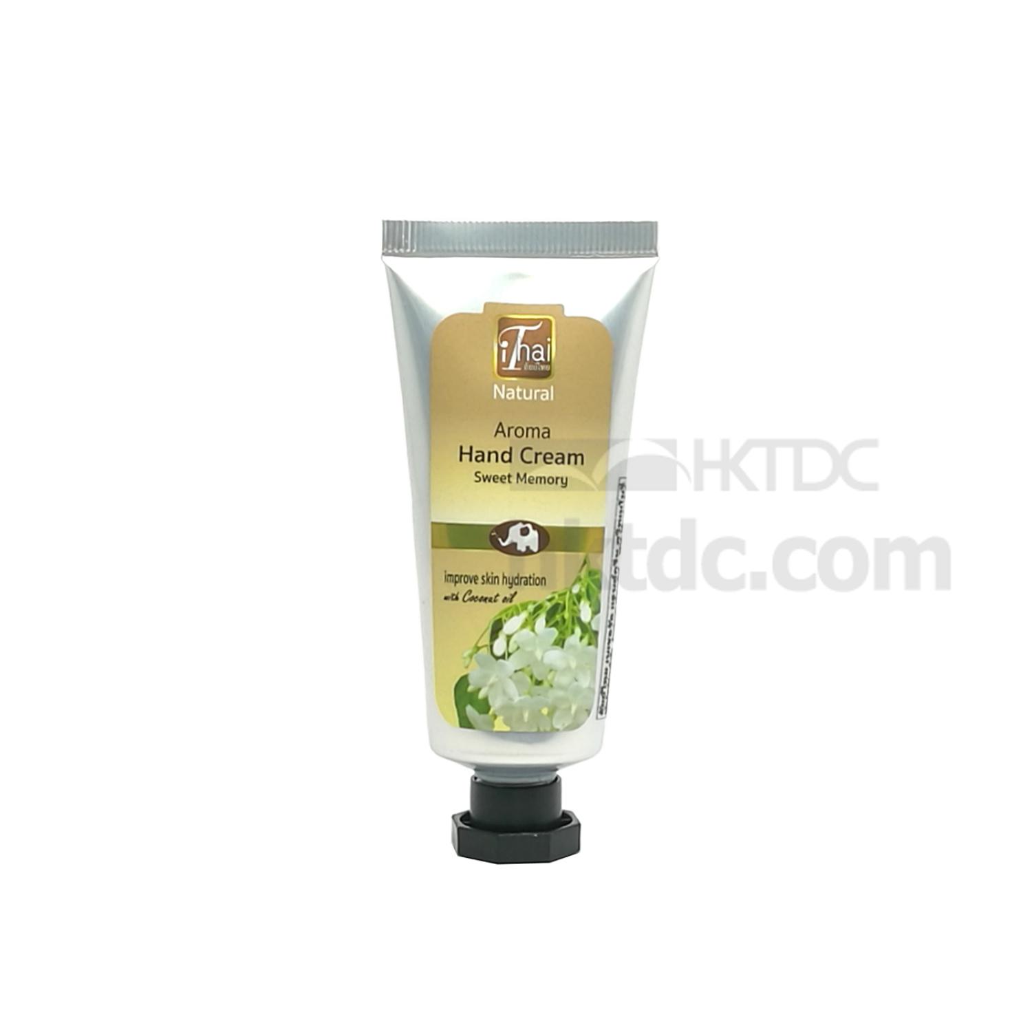 The iThai Natural Aroma Hand Cream - Sweet Memory is moisturizing cream with 5 natural oils, shea butter and effect of centella extract to help reduce free radicles and promote antiaging for skin.