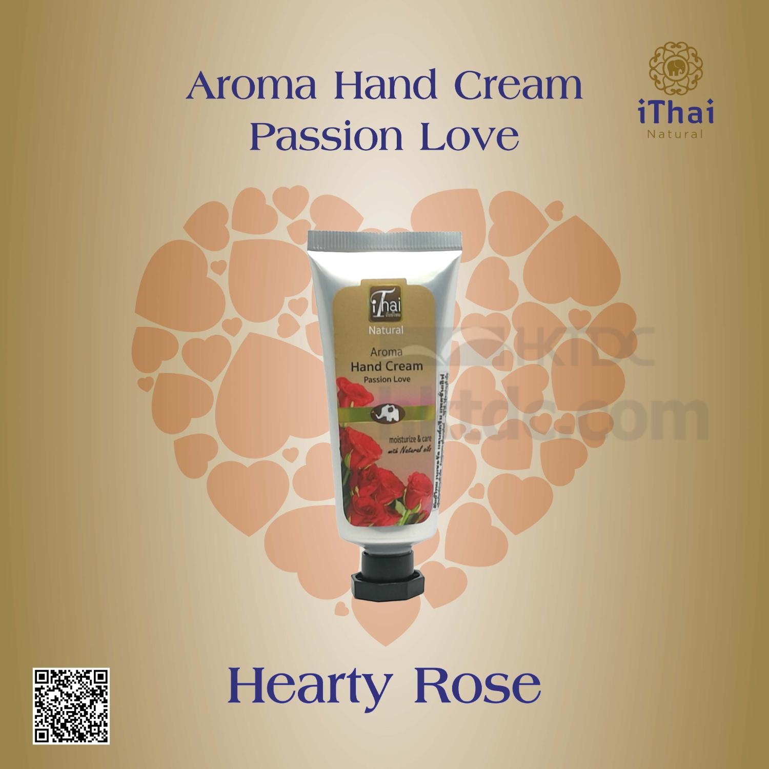 When wisdom from the east meets scent and aroma from the west, it happens from passion & love. The iThai Natural Aroma Hand Cream - Passion Love (Rose scent) is specially blended from 5-natural oils, shea butter and the most wellknown centella extract, which to help to prevent free radicals causing skin aging.