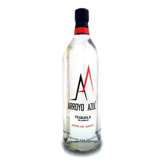 This is a bottle of tequila called Arroyo Azul. Made from 100% agave, this tequila blanco has a fine texture. This high quality liquor is ideal for making cocktails.