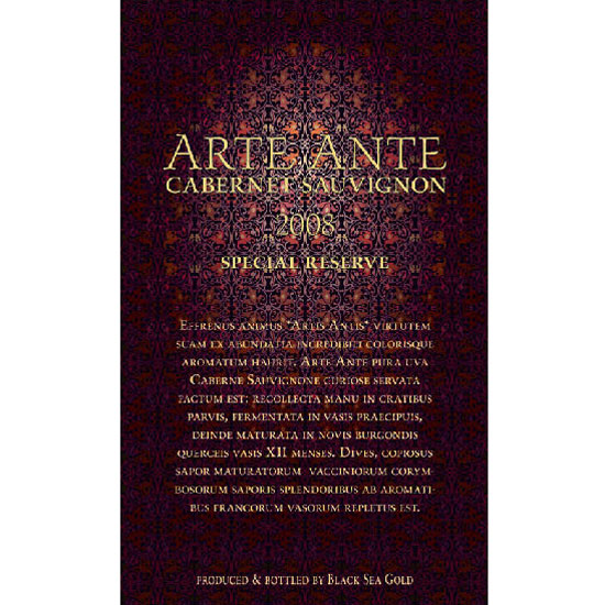This is a luxurious Bulgarian red wine made with the finest hand-harvested and carefully selected Cabernet Sauvignon and Cabernet. As suggested by the winery's name "Arte Ante", the red wine is a true piece of art. The wine is amazingly powerful, ripe and seductive, brimming with red plum, blackberry and guava flavors. The structure is utterly seamless, thanks to meticulous maturation for 15 months in the best Burgundian barriques, and the long aftertaste is beautifully structured with delightful roundness. Pairing this Cabernet Sauvignon Special Reserve with roasted red meat is just perfection.