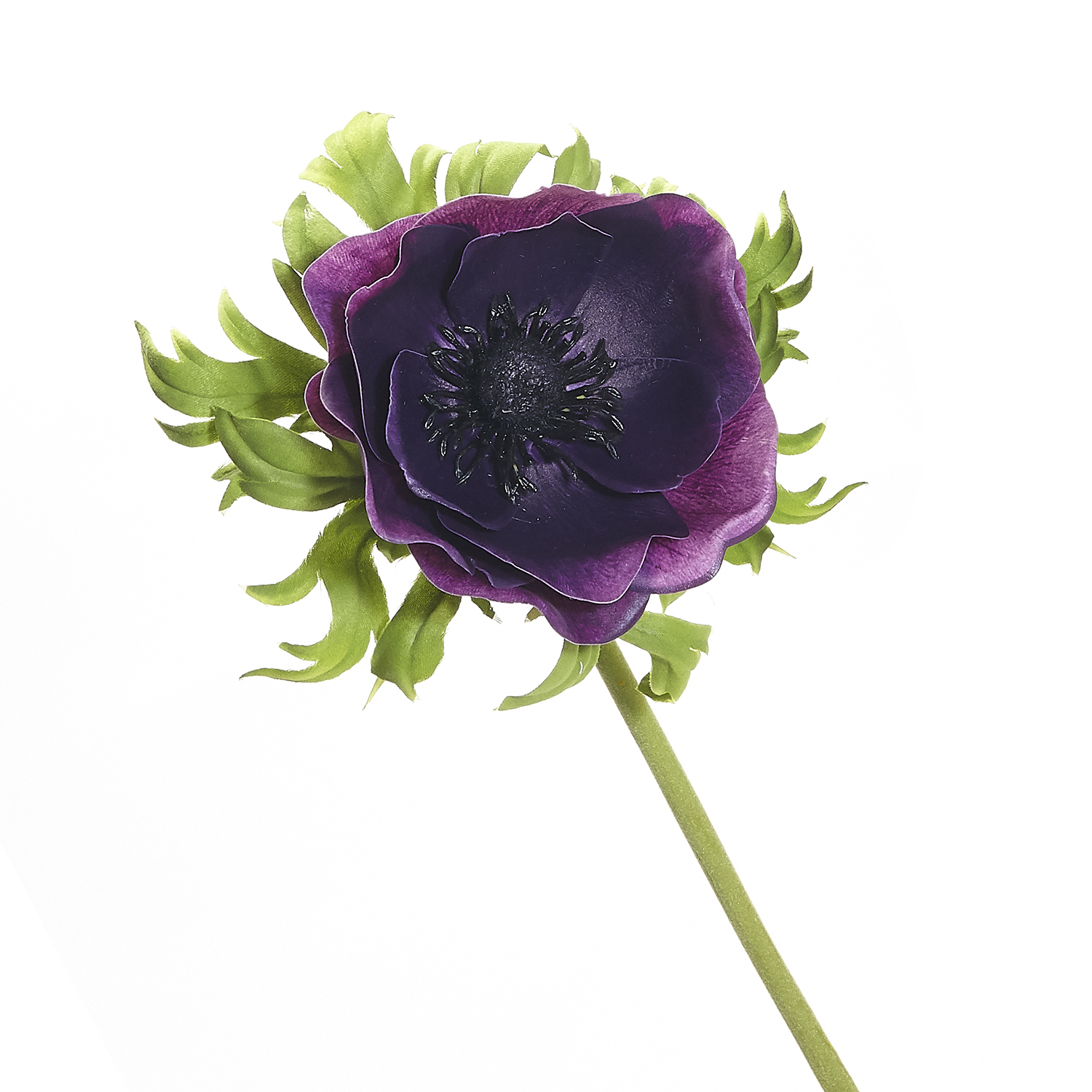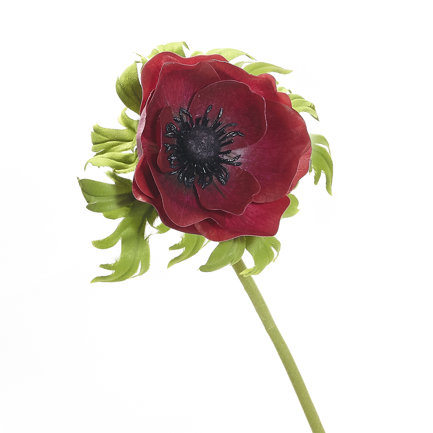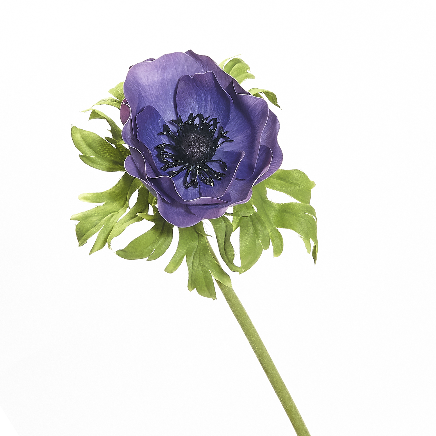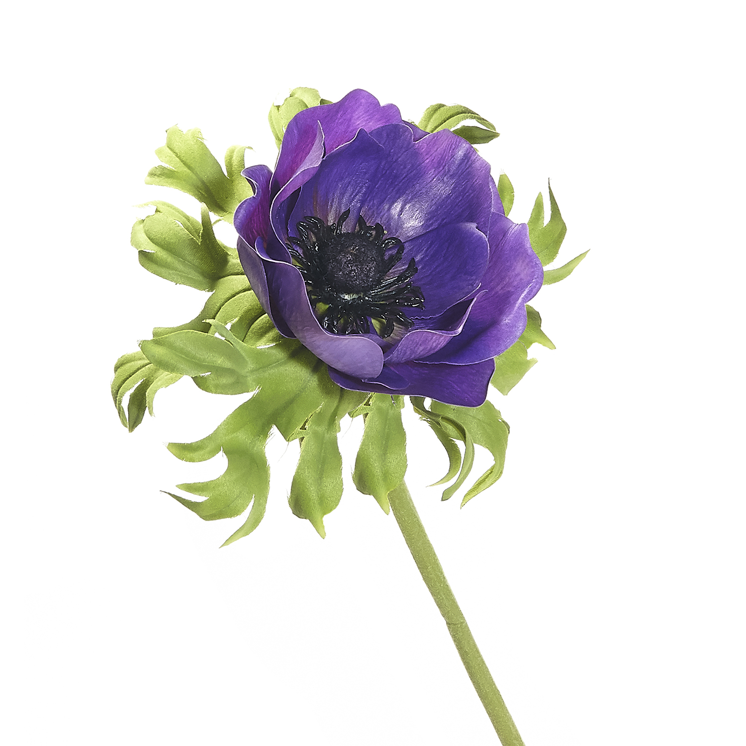 Decorate homes, offices, hotels and other places with this artificial anemone flower. It features a single stem poppy anemone with a large flower and is adorned with green leaves. This artificial anemone flower looks exactly like a real flower and offers a hassle-free to improve indoor decor.