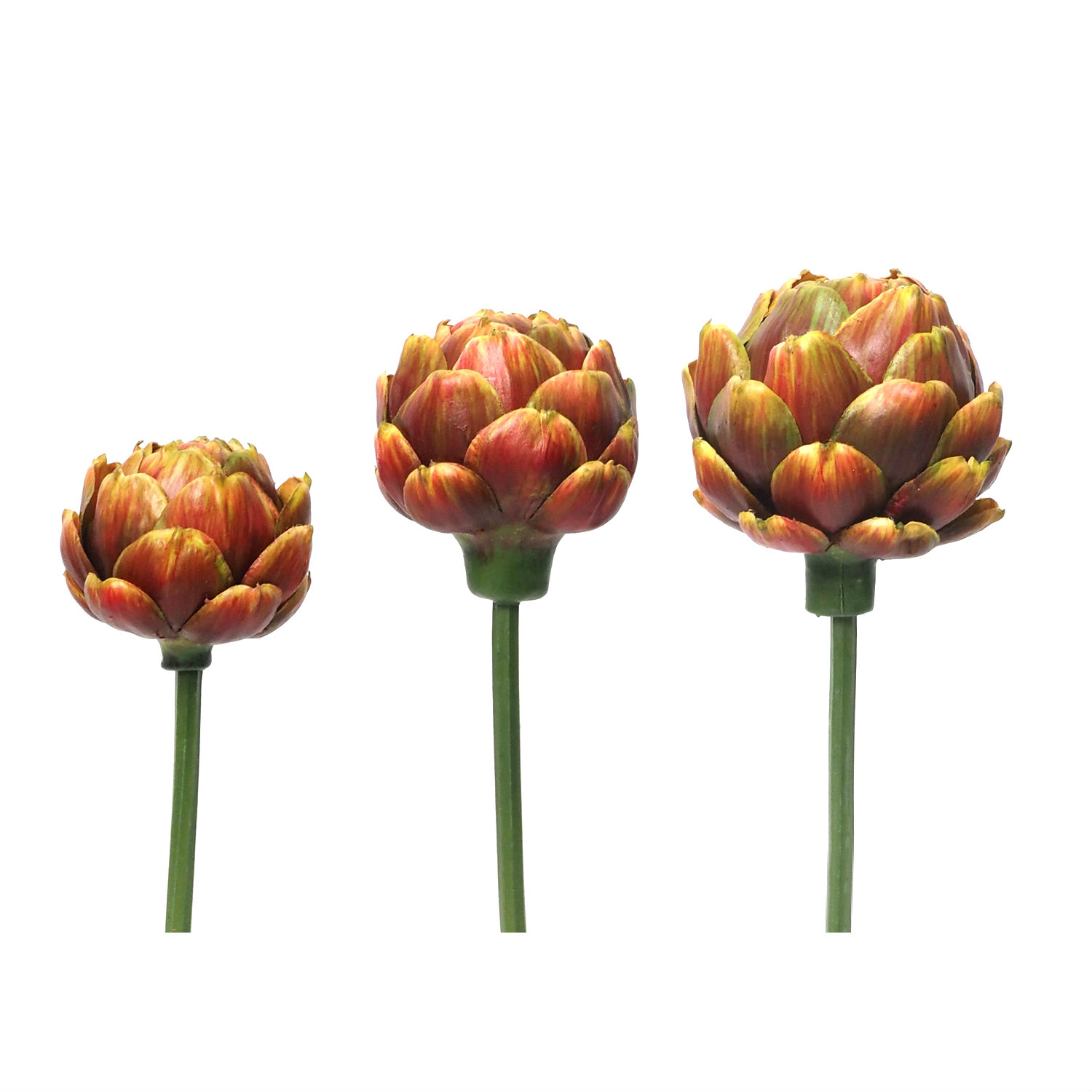 These artificial flowers is meticulously crafted in a full, healthy artichoke silhouette fixed on a stalk to bring color to bring liveliness to any interior. Made of durable polyester, these artificial flowers make an excellent, long-lasting alternative to fresh flowers.