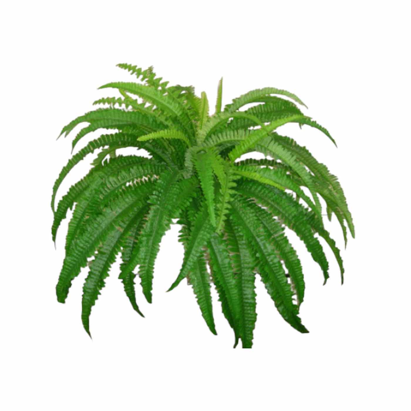 This UV protection artificial Boston fern bush is made of plastic which is weather. It is a good decoration to your home or workplace.