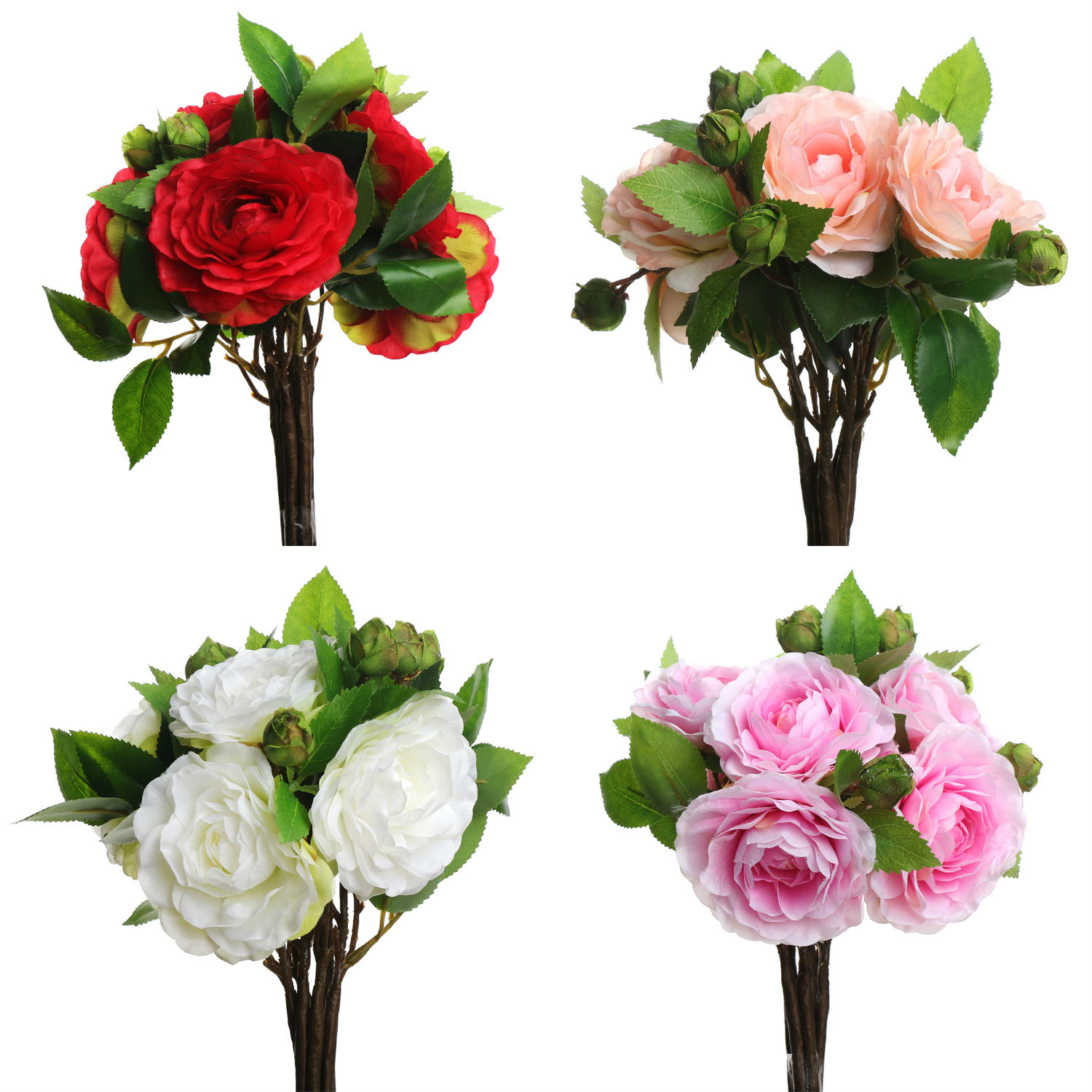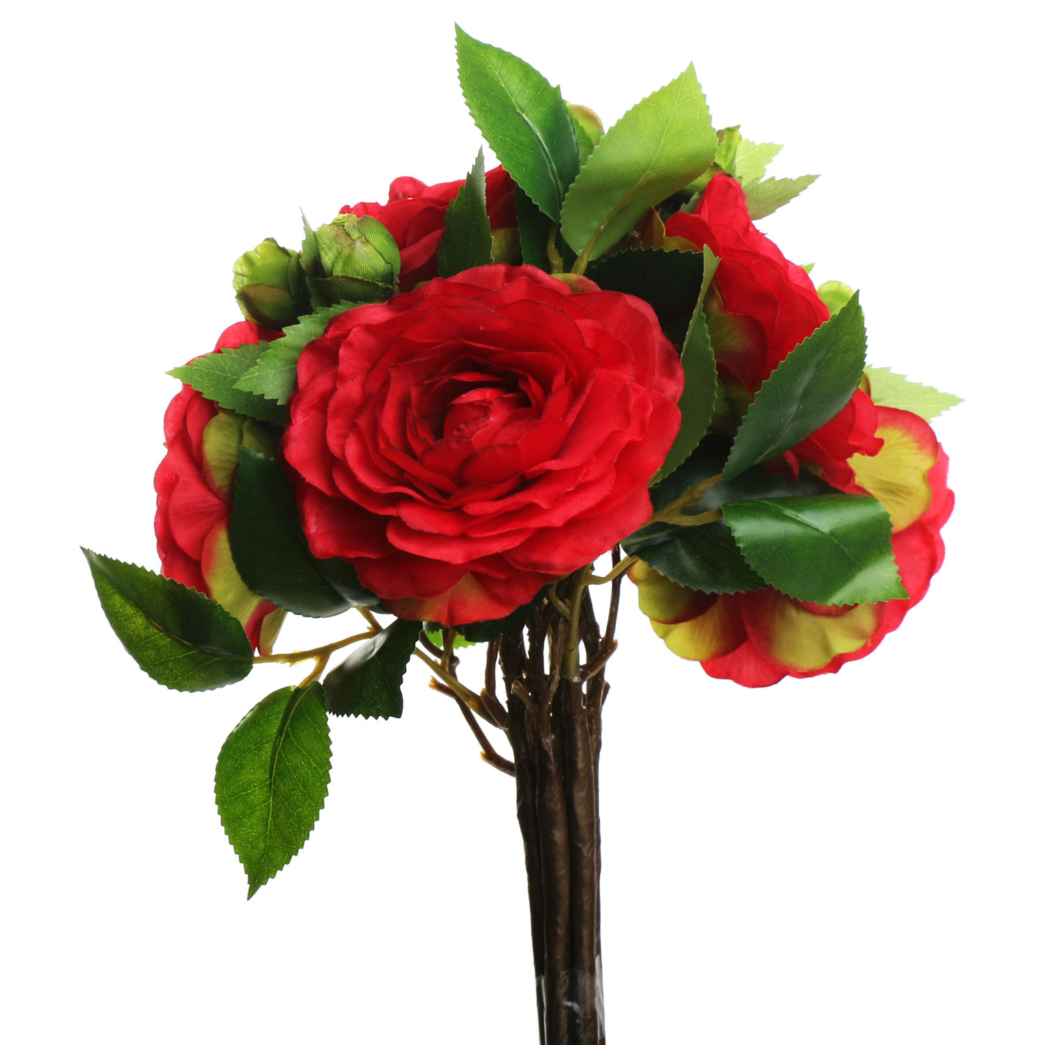 Embrace the summer vibe with these camellia bundles. These camellias are made of polyester, mimicking the soft flower petals and leaves that remain fresh and vivid year after year. Comprised of multiple blooms, they look gorgeous whether stand alone in the vase or mix with other pieces.