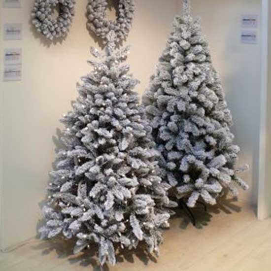 This artificial Christmas tree features a snowy appearance. The color, texture and shape of the leaves and stem look exceptionally realistic. Matching with shiny decorations and lighting, this tree can fill the room with a romantic air.