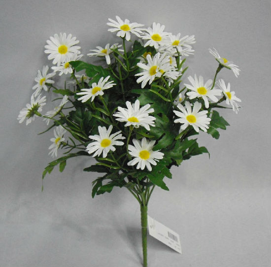 • Each stem features some crystal white daisy blooms with yellow centers.