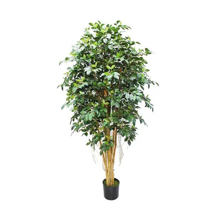 This artificial deluxe ficus tree is made of plastic. It creates a green accent to beautify the space. It is a good decoration for your home or workplace.