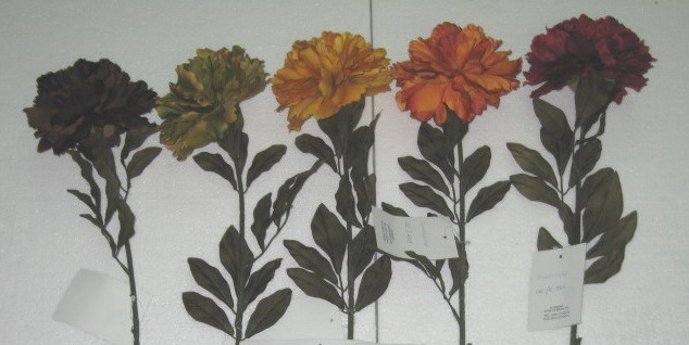 • A single stem of Peony with 1 flower and 14 leaves, various colors available (33"L).