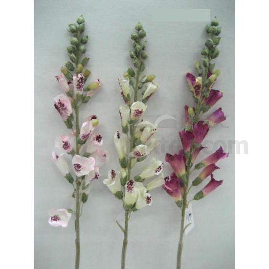 • 65cm faille fox glove spray w/18 flrs, 18 buds on flocked stem. (stem size : h:64cm)(lower stem per polybag)