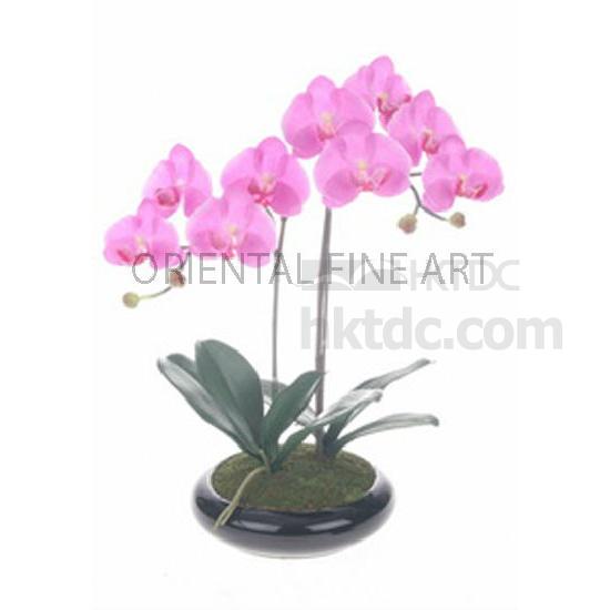 This is an artificial orchid arrangement that comes in a black vessel. Finely detailed and soft lavender in colour, the artificial flowers will not need any extra care to flourish and will never wilt. This floral arrangement is great as a decorational piece for the home or office.
