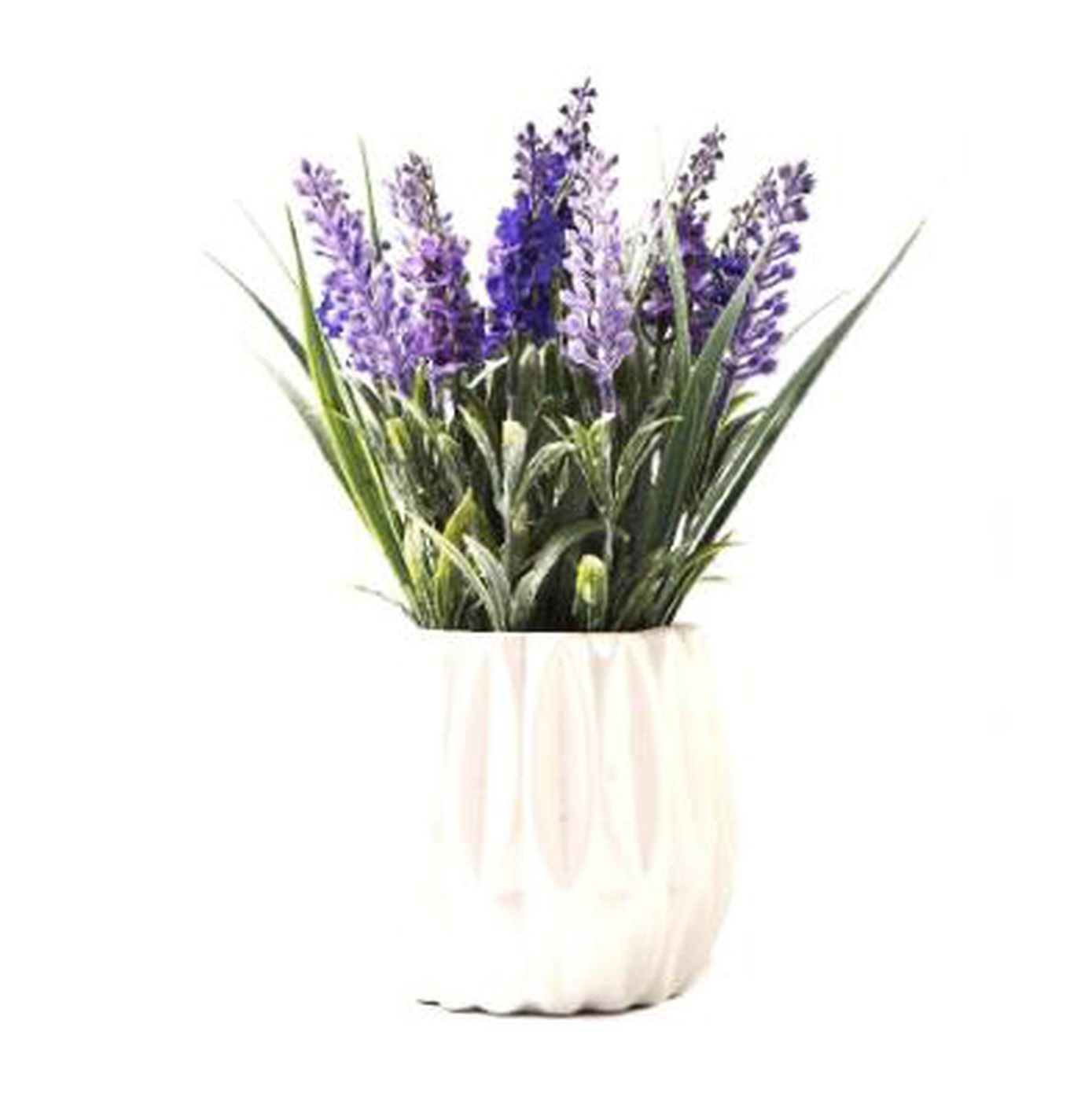 The artificial plant of the flower plant on a plastic base.