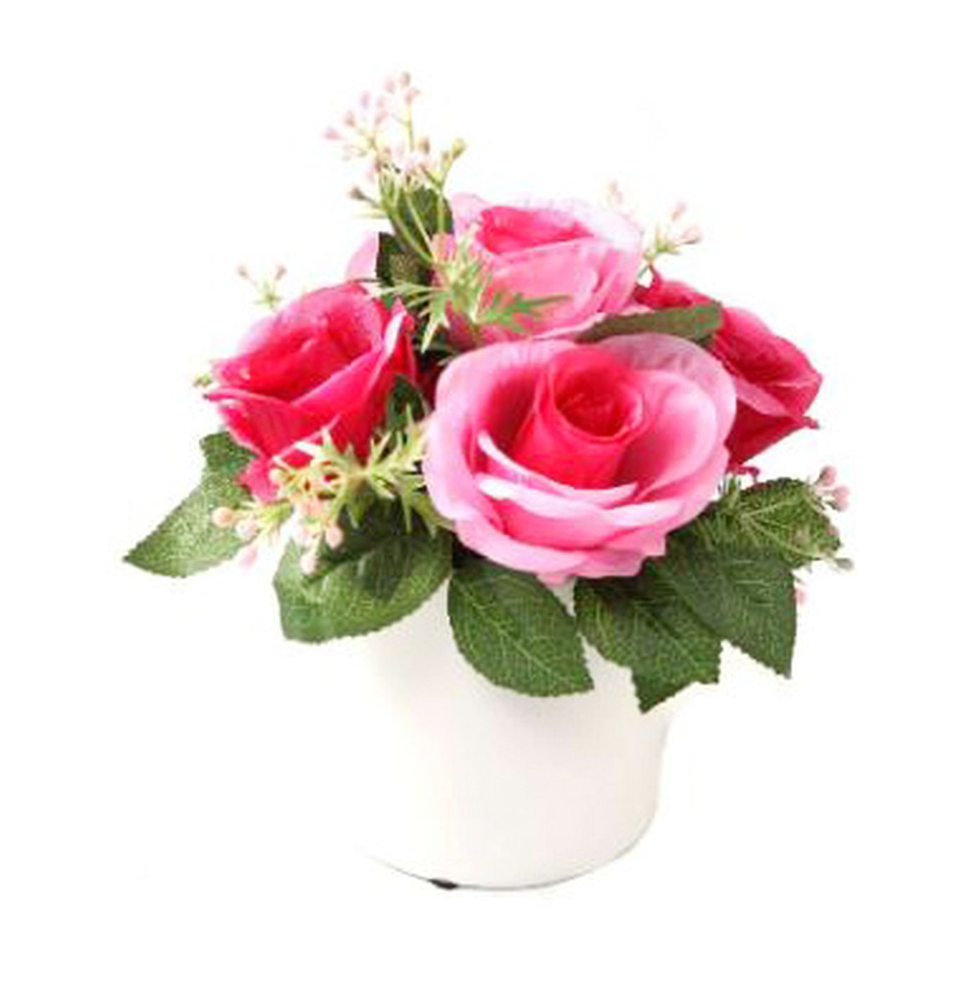 The artificial plant of the flower plant on a plastic base.