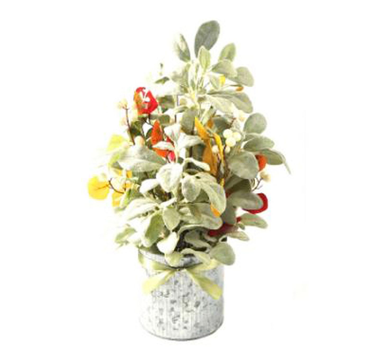 The artificial plant of the flower plant on a plastic base.