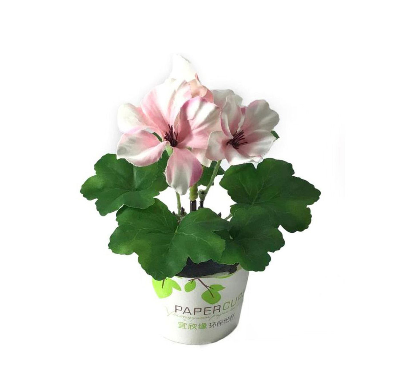 The artificial plant of the flower plant on a plastic base.