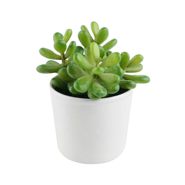 Featured here is an artificial jelly bean plant made of plastic and fabric. Sporting a realistic look, the plastic plant shows healthy, green leaves springing from a pot. With this plant decoration, you can bring in an air of freshness to your tabletop without the hassles of taking care of the plant.