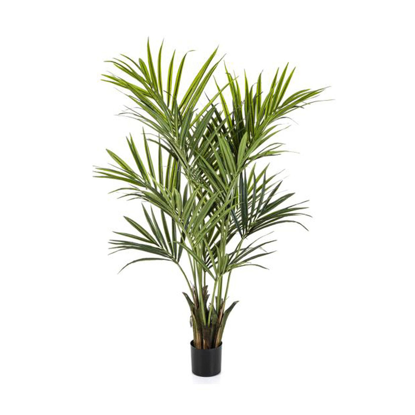 This artificial kentia palm tree is made of plastic. It creates a green accent to beautify the space. It is a good decoration for your home or workplace.