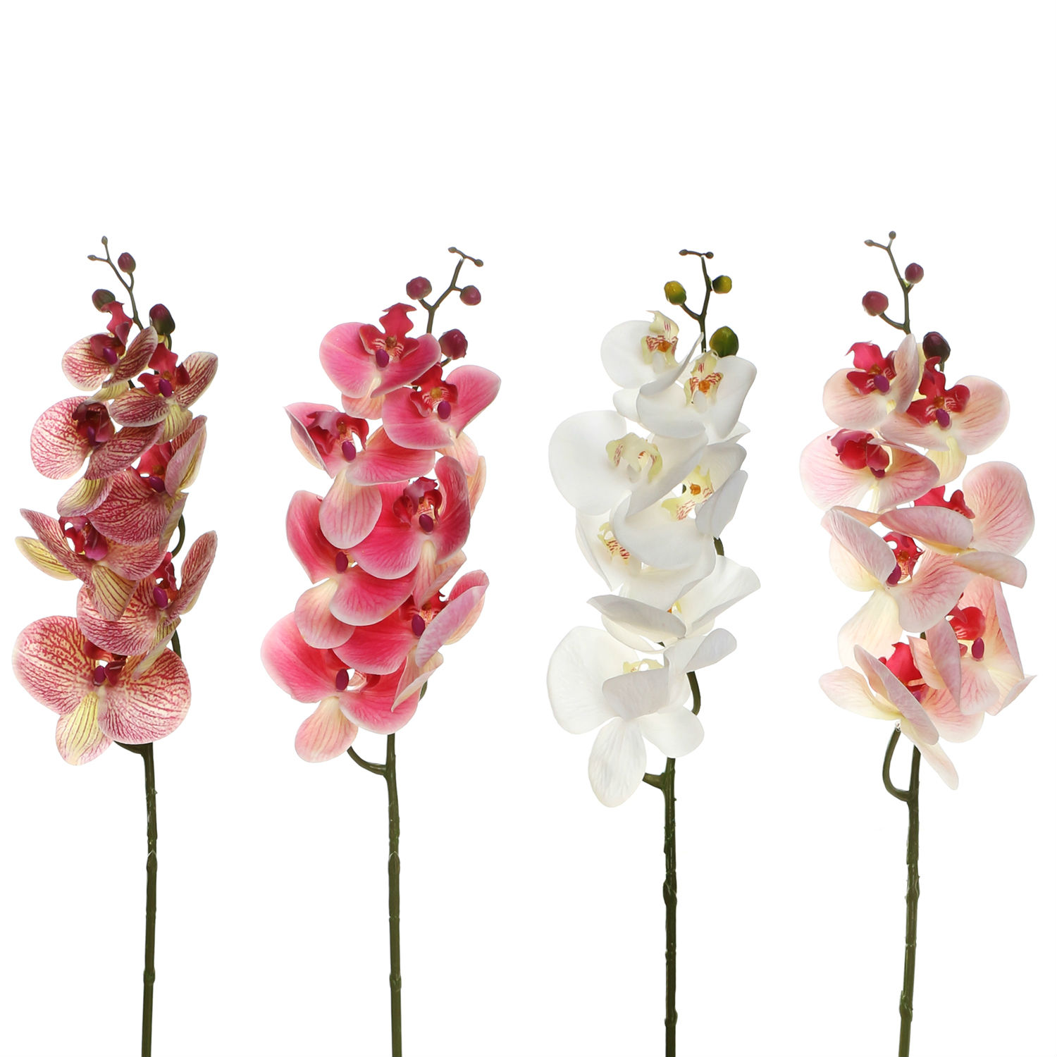 A versatile decorative item for all occasions, this simple and elegant plastic orchid looks stunning whether placed alone in the vase or added to an arrangement. Made of meticulous craftsmanship, this orchid spray consisting of 7 flowers and 3 bulbs boasts a true-looking appearance in natural shades.