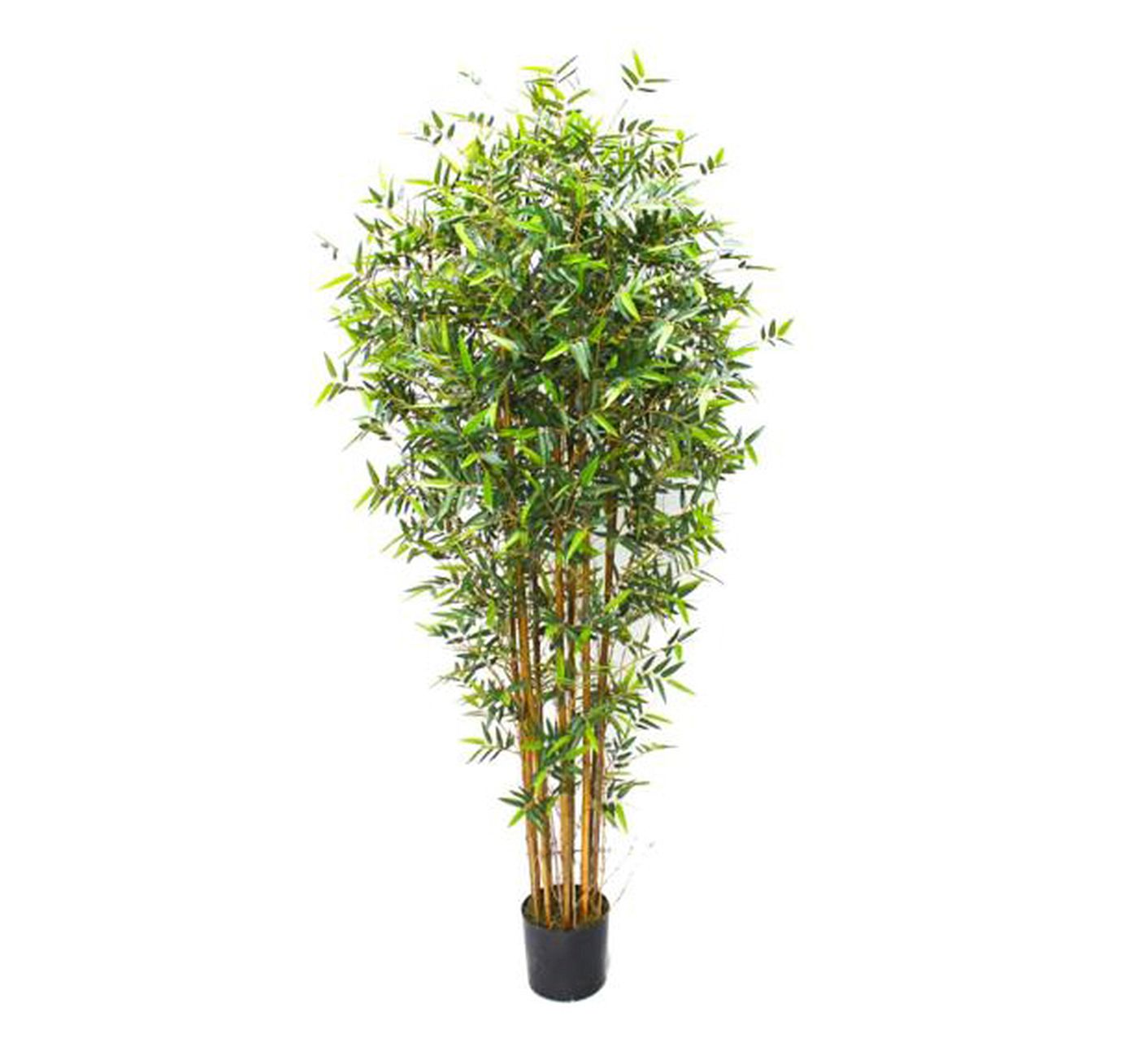The artificial plant of the oriental bamboo tree on a plastic base.