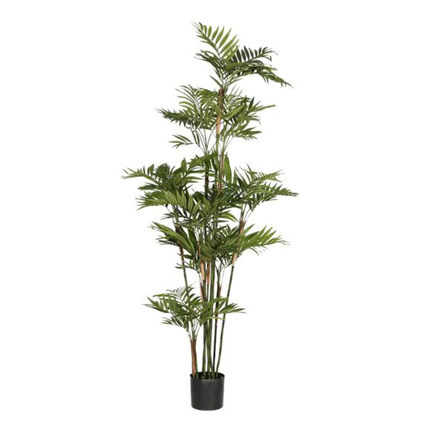 This artificial parlour palm tree is made of plastic. It creates a green accent to beautify the space. It is a good decoration for your home or workplace.