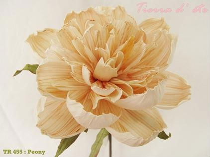 This pale orange artificial peony is looking just like the real one. The flower is handmade with a natural material from the plant called SA-NO with very nice and real looking pale orange petals. The petals are colored with a special technique to create a very subtle appearance.