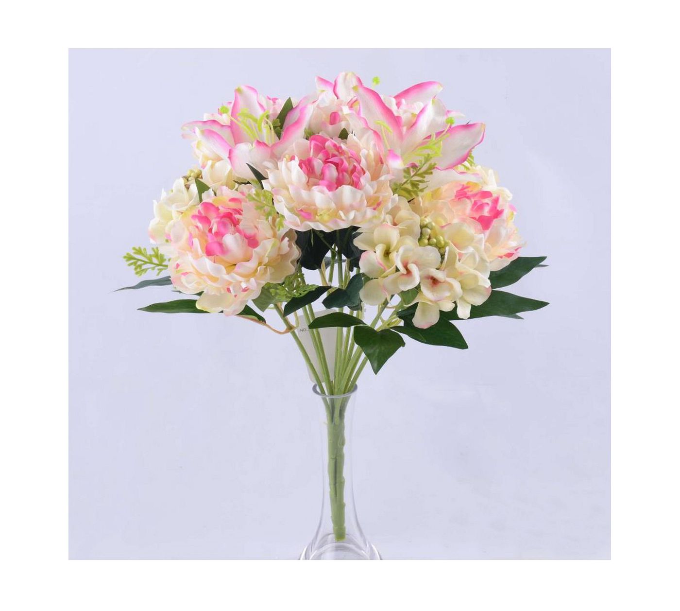 The colorful artificial 12 heads peony & lily flower with fabric and iron wire materials.