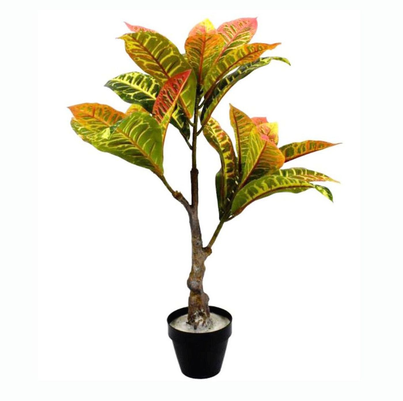 This artificial bonsai tree is made of plastic. It creates a green accent to beautify the space. It is a good decoration for your home or workplace.