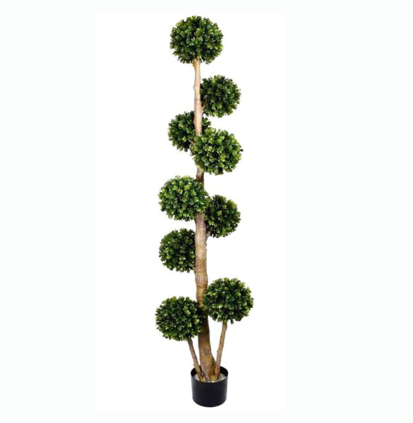 This artificial boxwood tree is made of plastic. It creates a green accent to beautify the space. It is a good decoration for your home or workplace.