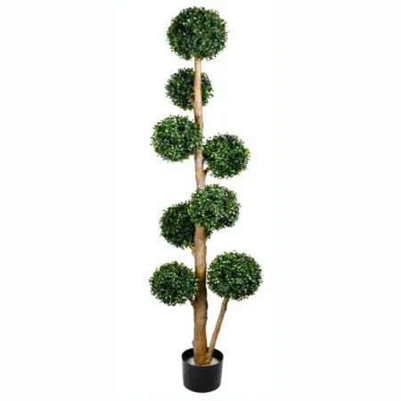 This artificial boxwood tree is made of plastic. It creates a green accent to beautify the space. It is a good decoration for your home or workplace.