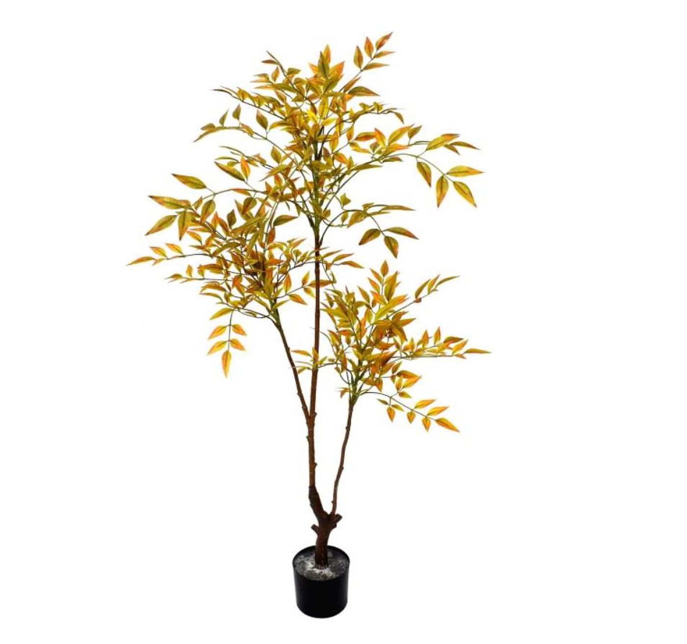 This artificial bonsai tree is made of plastic. It creates a green accent to beautify the space. It is a good decoration for your home or workplace.