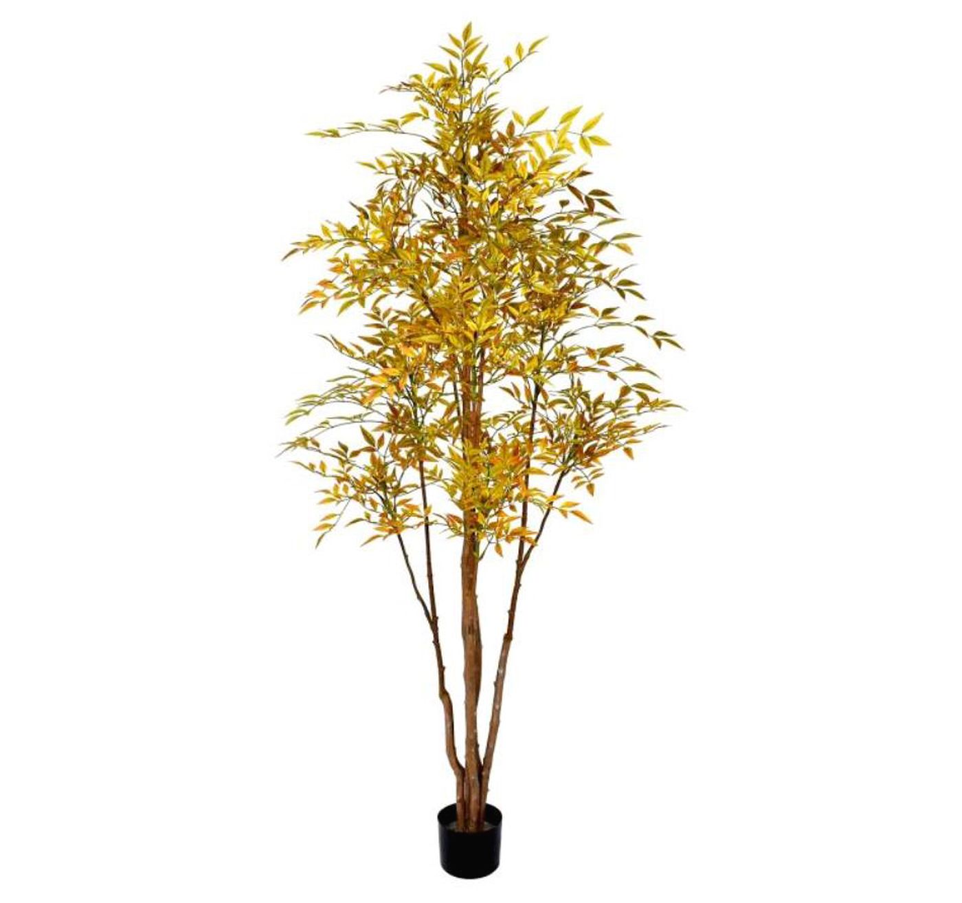 This artificial bonsai tree is made of plastic. It creates a green accent to beautify the space. It is a good decoration for your home or workplace.