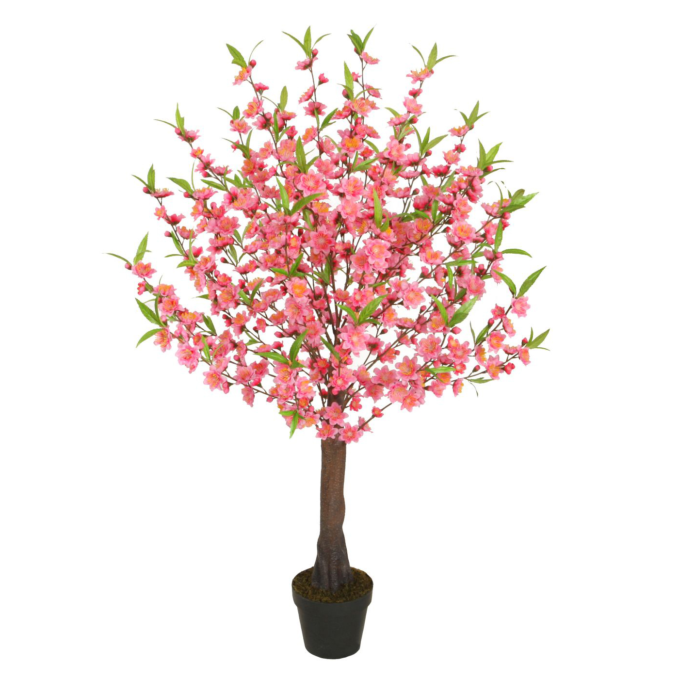 This artificial peach tree is made of plastic. It creates a green accent to beautify the space. It is a good decoration for your home or workplace.