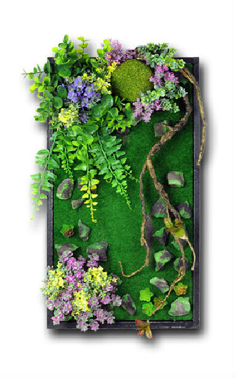 This artificial plant picture comes in a rectangular shape and is embellished with colorful flowers and plants. It is filled with natural atmospheres diffused with scent of primeval forests. The picture comes in different designs and is excellent for decoration use.